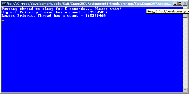 The results look something like this… the counts will be different based on the speed of you CPU, whether you have a single core, duo core or hyper threading!