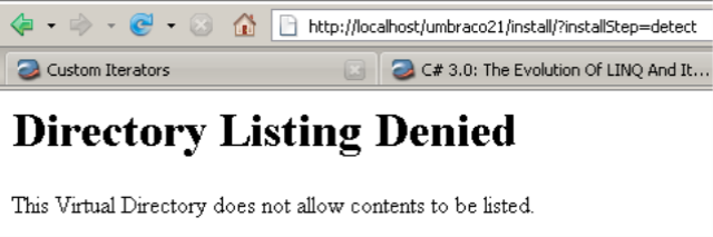 When I pressed Next, I found that I was staring at “Directory Listing Denied” (take a look at the URI in the address bar!)