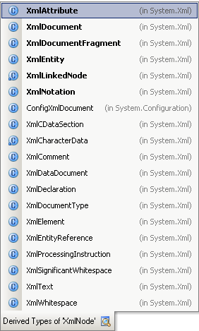 This kind of scares me a bit because of the Xml object hierarchy. The reason being, there are several sub classes of XmlNode, and trying to understand this object hierarchy is not interesting to me.