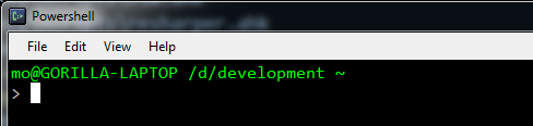 It now tells me what branch i am on. Whoa… All I had to do was drop a modified version of profile.ps1 into “c:\users\mo\documents\WindowsPowerShell”. If the “WindowsPowerShell” folder doesn’t exist, then create it. That’s what I did. This is also using posh-git. If you checkout the source you’ll find an example of the profile.ps1 that you can use.