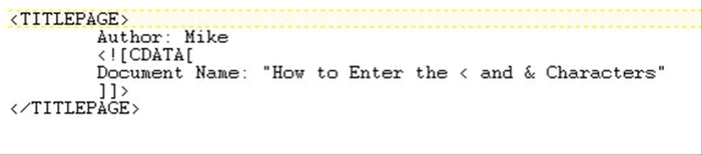 "CDATA sections - A CDATA section is a block of text in which you can freely insert any characters except the string ]]>. Here's an example of a CDATA section in an element:" - sourced from "Step by Step XML" by Michael J. Young