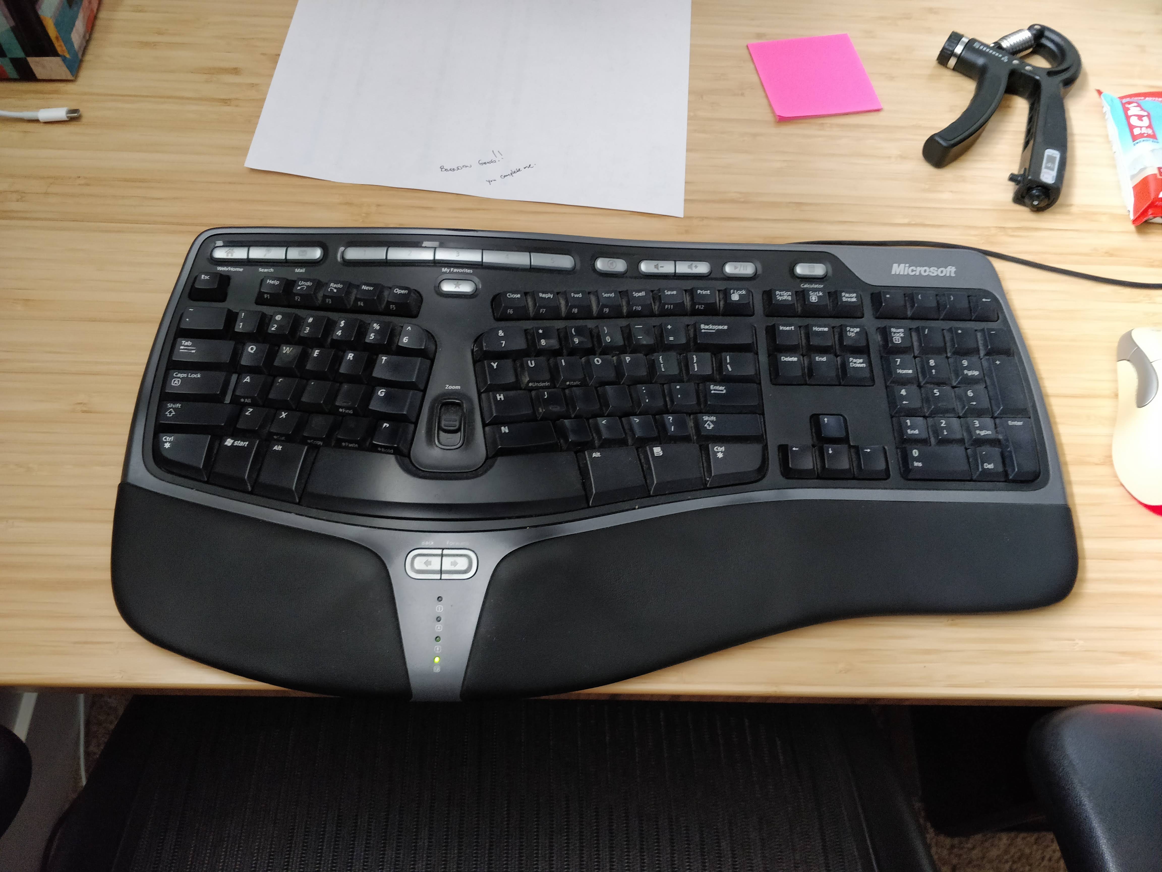 Microsoft Natural Ergonomic Keyboard 4000 since 2007. Still works. People post fancy keyboards in our #keyboards Slack but why fix what isn’t broken?