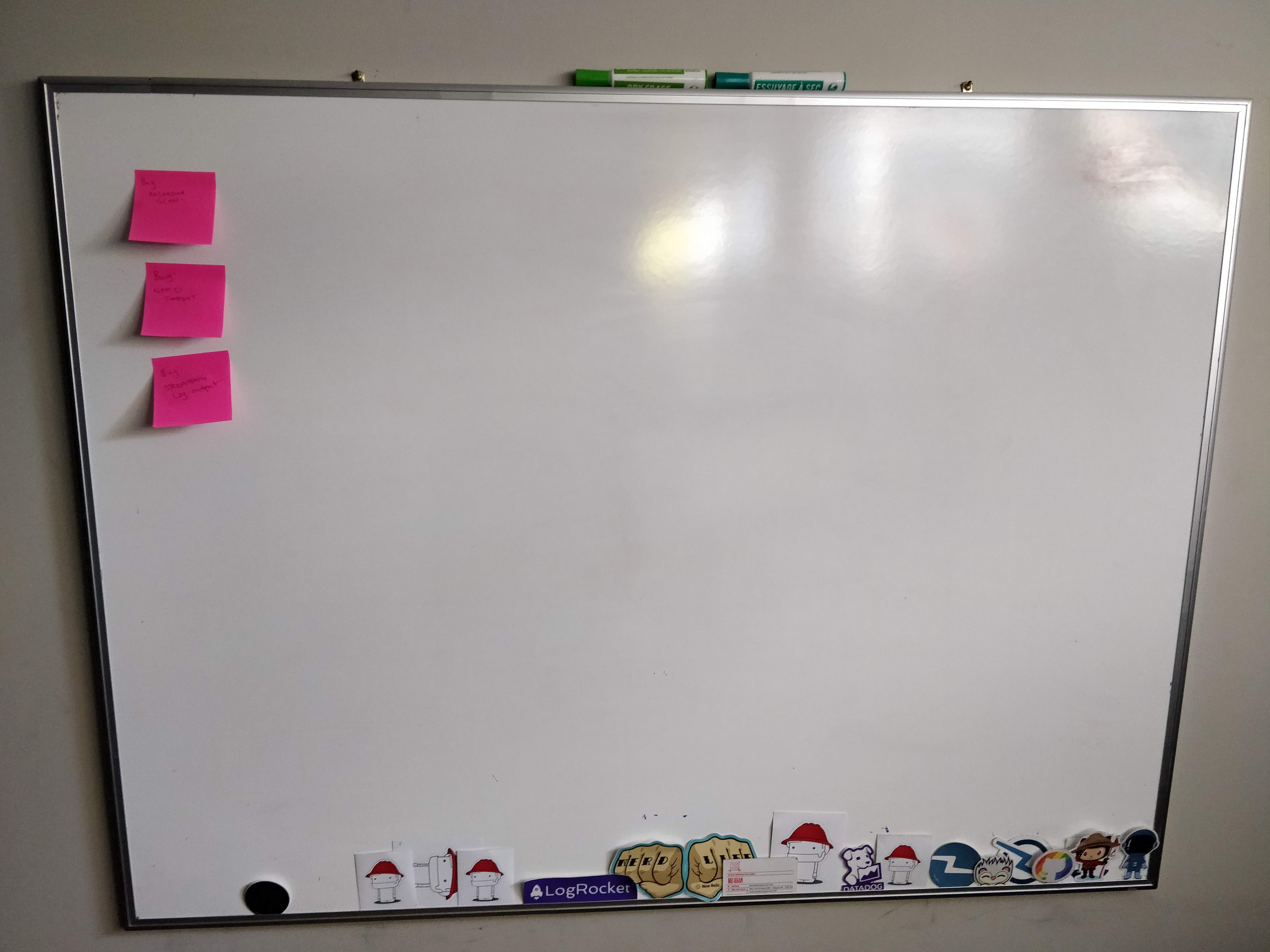 Whiteboard behind my desk with colored markers. Essential for thinking through complex problems.