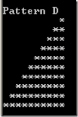 Console.Write( "*" );which causes the asterisks to print side by side. A statement of the formConsole.WriteLine();can be used to move to the next line. A statement of the formConsole.Write( " " );can be used to display a space for the last two patterns. There should be no other output statements in the application. [Hint: the last two patterns require that each line begin with an appropriate number of blank spaces.]”